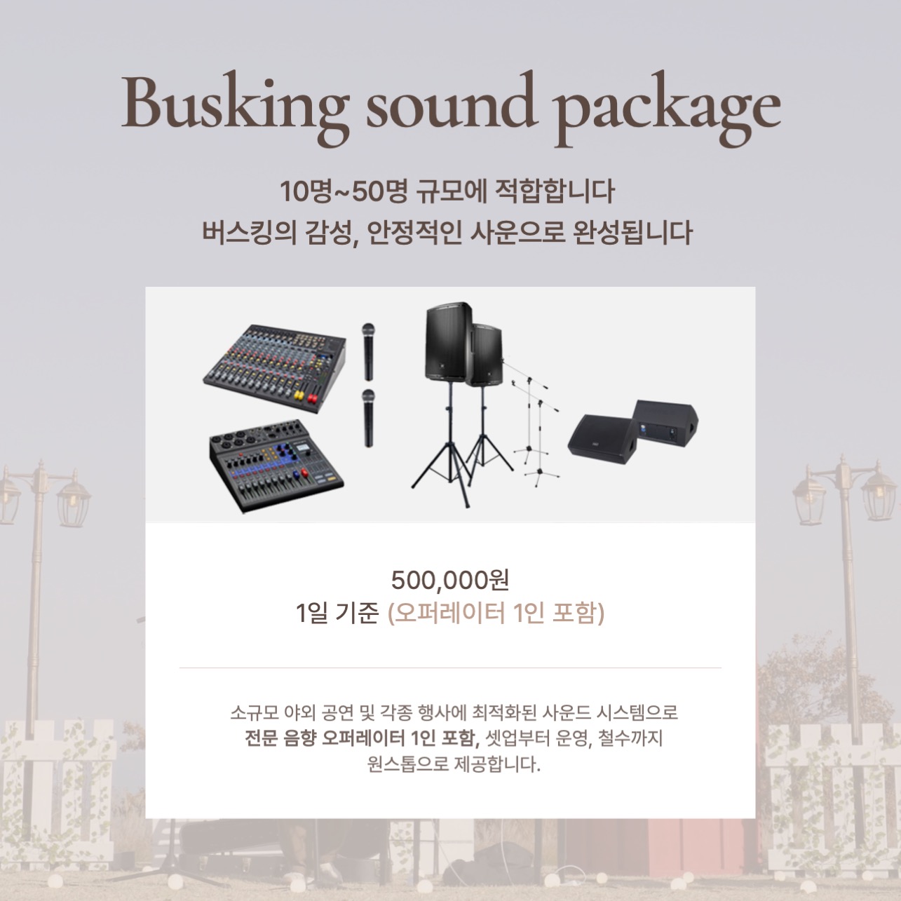 ✅ 10~50명 규모에 적합 / 버스킹의 감성, 안정적인 사운드 제공