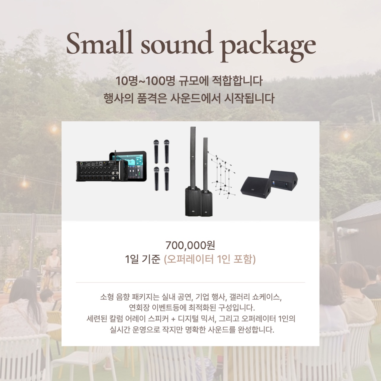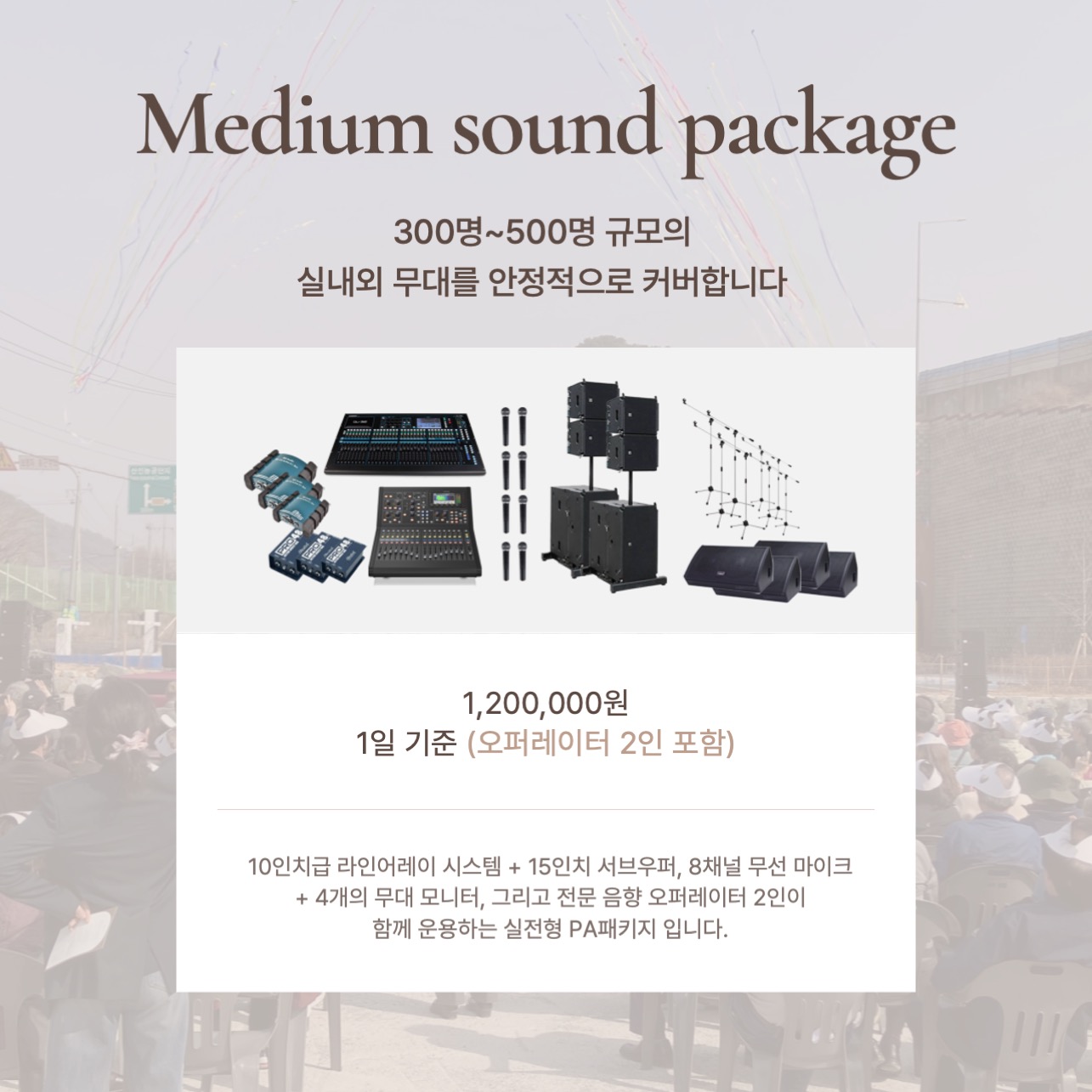 ✅ 전문 음향 오퍼레이터 1인 포함, 셋업부터 운영, 철수까지 원스톱 진행